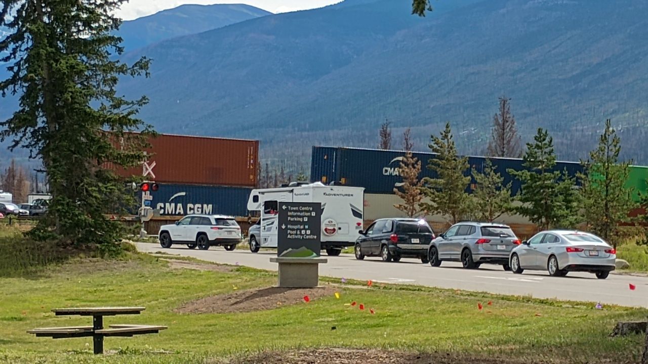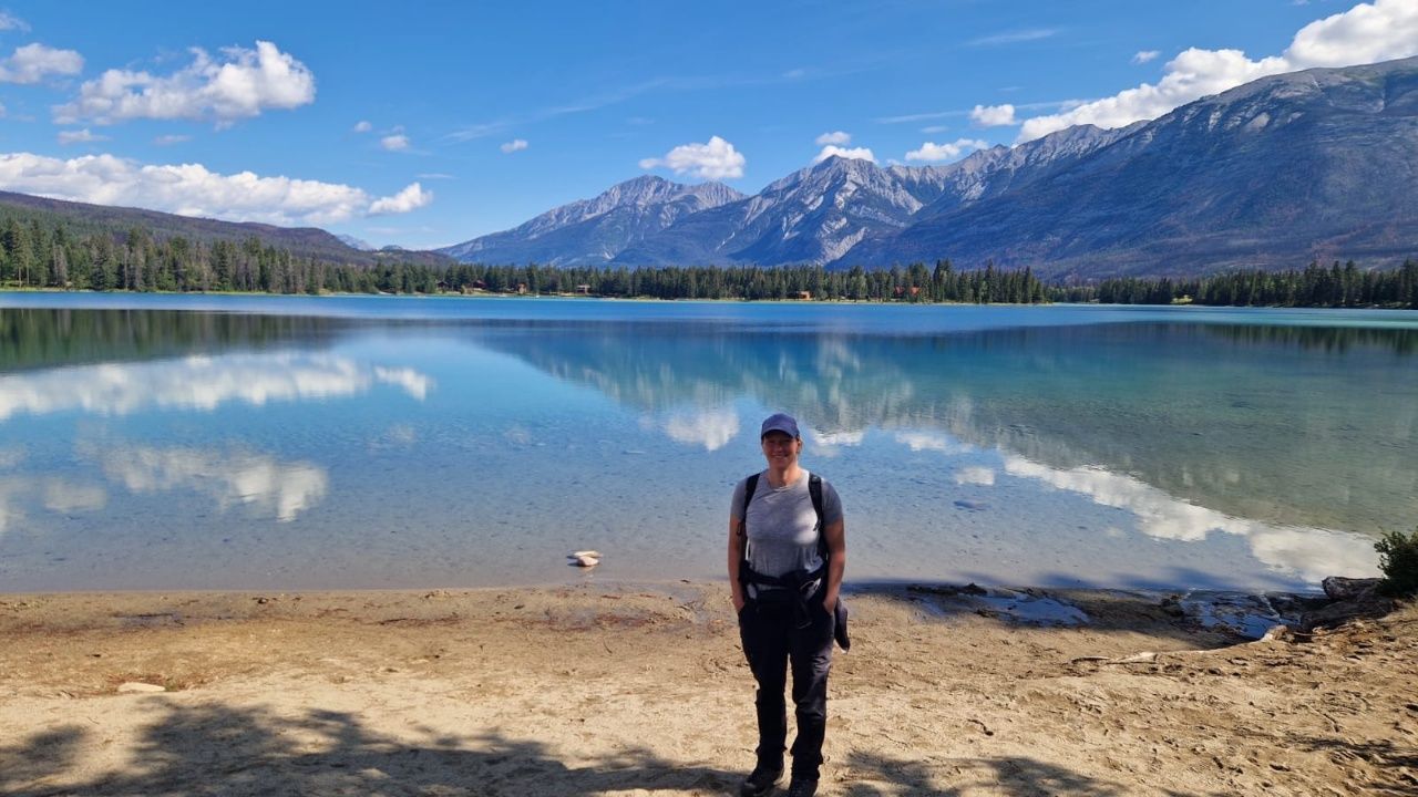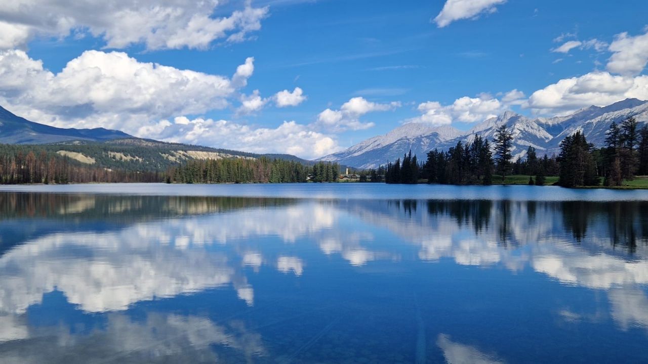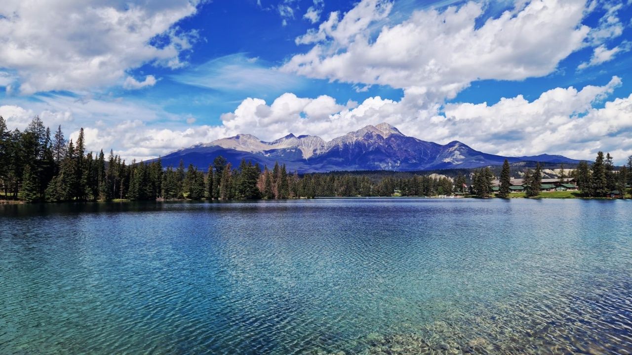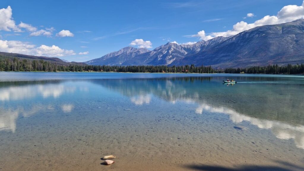 Da noch nicht alles wieder aufgebaut ist, sind auch einige Sehenswürdigkeiten für unser Wohnmobil (hier übrigens „RV“ übersetzt Recreational Vehicle) nicht zugänglich. Wir fahren also an unserem ersten Tag früh morgens mit dem örtlichen Bus vom Campingplatz zu drei umliegenden Seen „Edith“, „Annette“ & „Beauvert“ und wandern ca. 8km an den Seen entlang zur Stadt Jasper. Dort essen wir etwas und schlendern durch die Innenstadt. Da der Bus erst Abends zurück fährt, entscheiden wir uns, die 5km zu unserem Campingplatz „Wapiti“ – welcher etwas außerhalb von Jasper liegt – zu laufen.