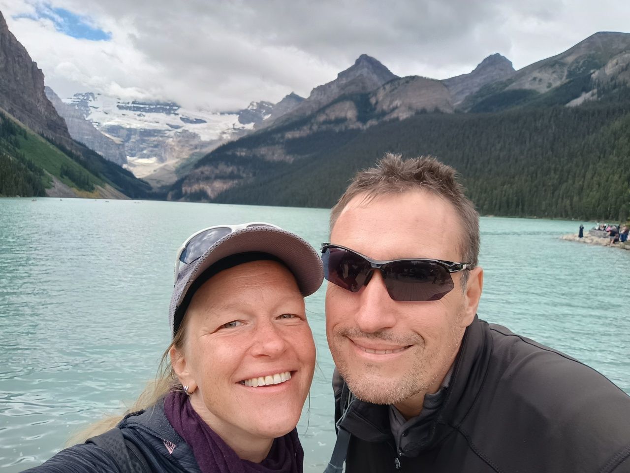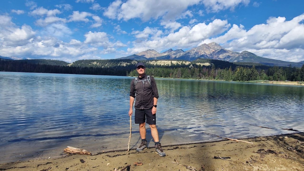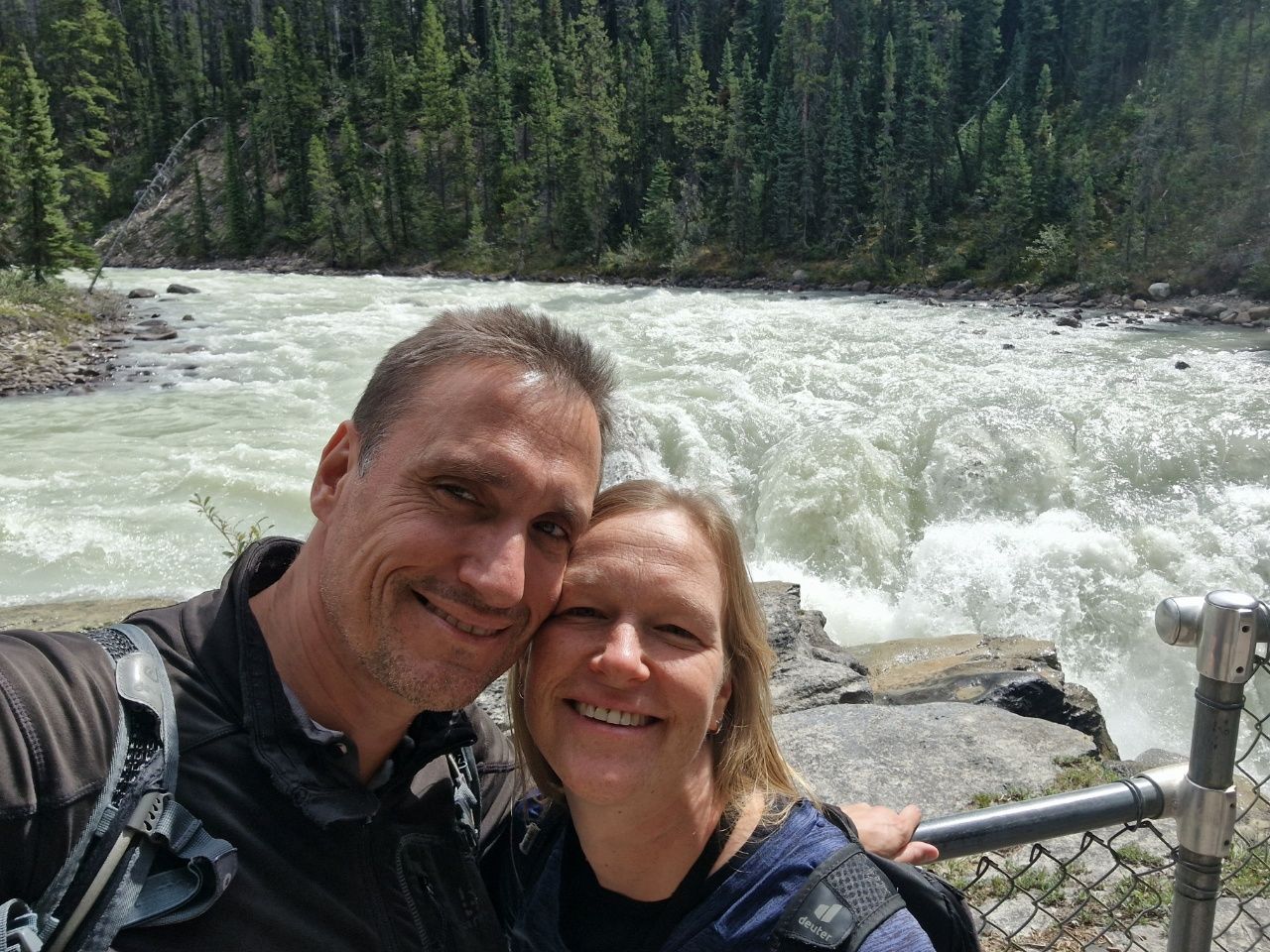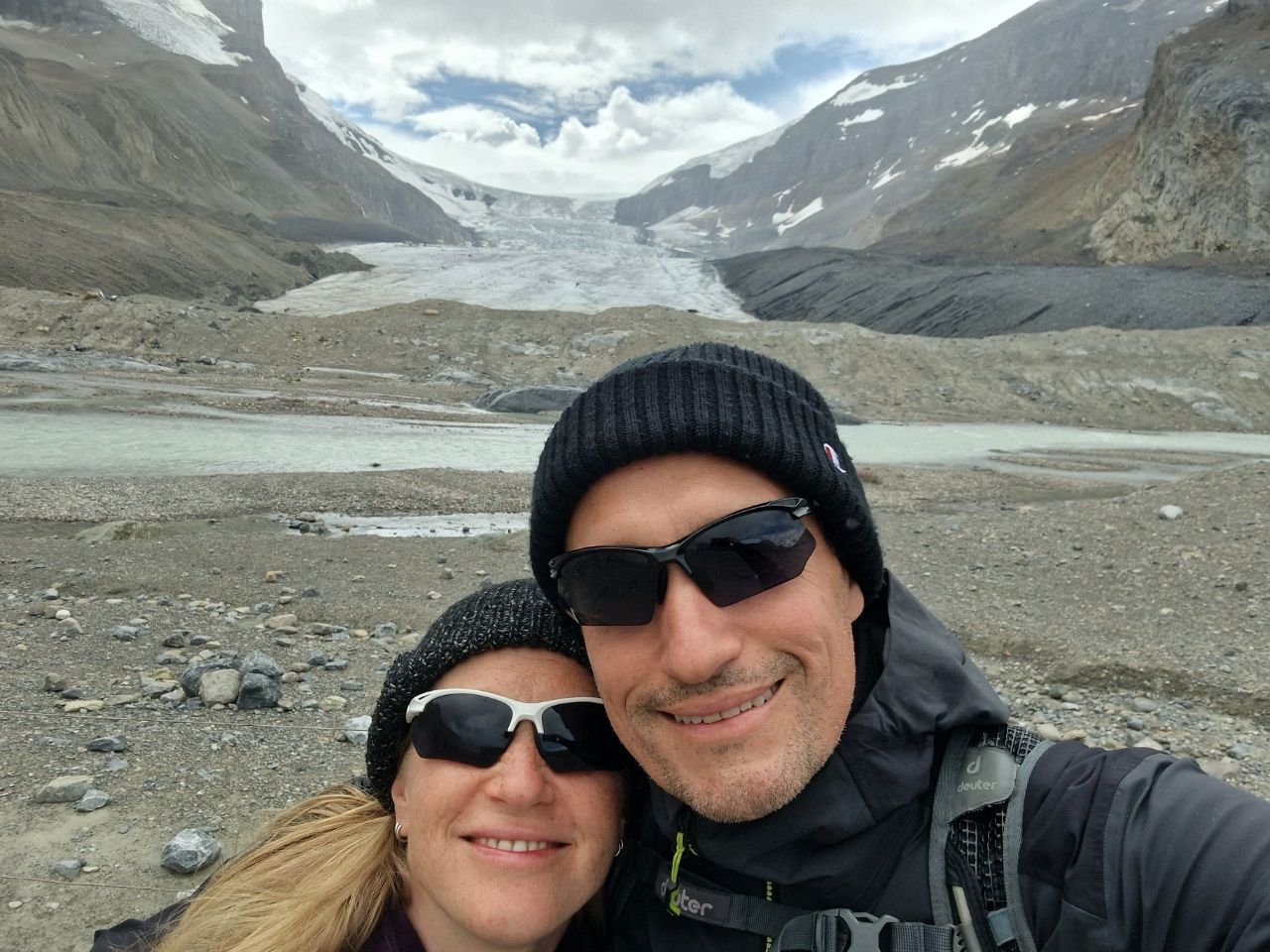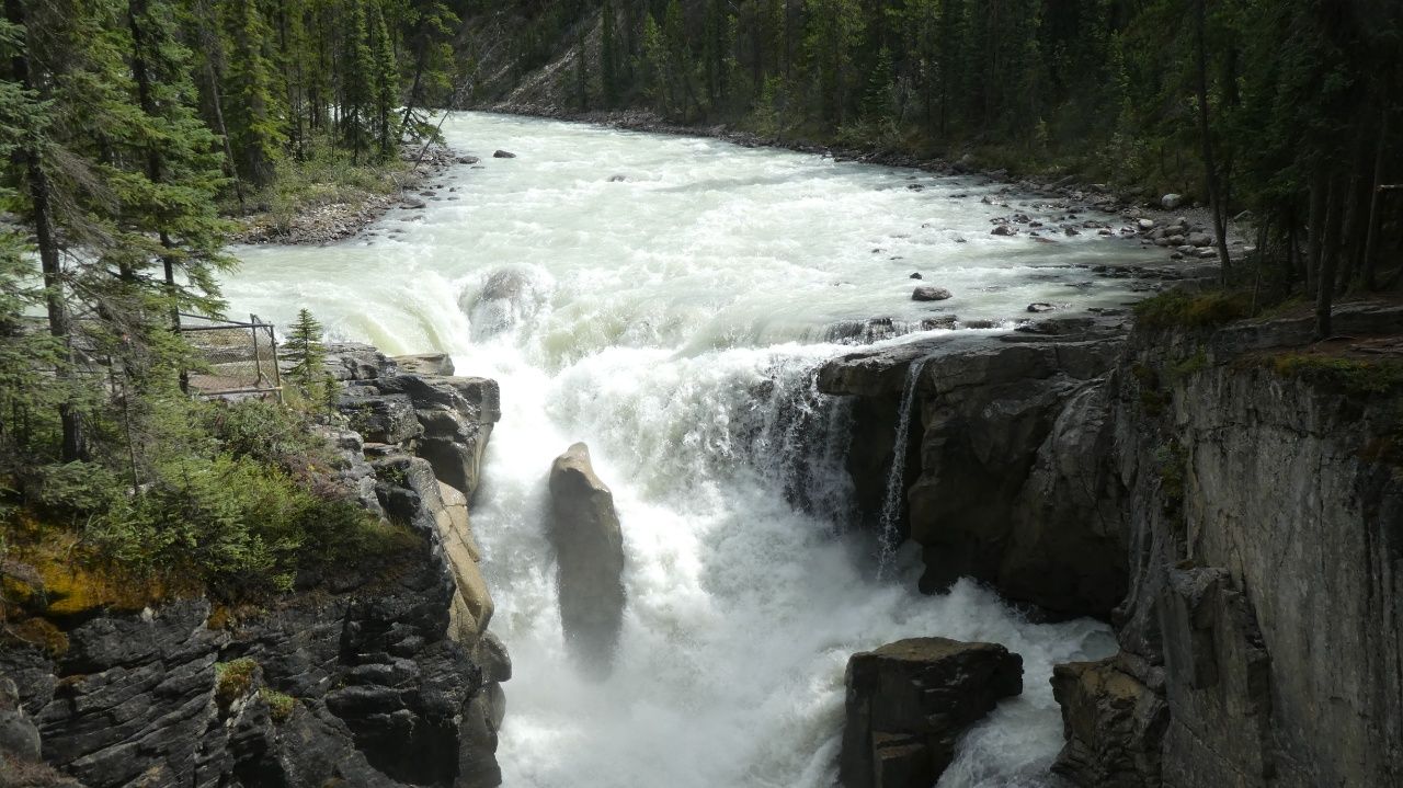 Auf unserem Campingplatz sehen wir früh einen Wapiti.Wenn man aus dem Autofenster schaut, sieht man kilometerweit beindruckende Berge, kristallklare Flüsse & grüne Wälder, bis zum Horizont und soweit das Auge reicht!„Athabasca Waterfalls“ im Jasper NationalparkDie Athabasca Wasserfälle sind nicht wegen ihrer Höhe bekannt, sondern wegen der Kraft mit der das Wasser über den Fall fließt.Auf dem Weg zum zweiten Wasserfall sehen wir einen Schwarzbär am Wegesrand laufen. Der Schwarzbär ist ungefährlicher und kleiner als der Grizzly Bär, trotzdem sind wir froh, dass wir auf unseren vielen Wanderungen noch keinem begegnet sind.„Sunwapta Waterfalls“ Sunwapta bedeutet in indigener Sprache „wildes Wasser“Wir laufen zum Columbia Icefield, das ist ein Eisfeld des Athabasca-Gletschers.Wir laufen ca. 1 Stunde hin und zurück. Es ist recht kühl!Ich stehe auf einem vom Gletscher abgeschliffen Felsen.Näher können wir nicht an den Gletscher heran laufen.Schnell noch ein Selfie und dann geht’s wieder zurück und mit dem Wohnmobil weiter.Der „Peyto Lake“ – Dieser See hat seine blaue Farbe durch feine Gesteinspartikel vom Gletscher, die den roten Anteil des Lichtes absorbieren.Auf unserem Campingplatz in Lake Louise gibt es wie überall bärensichere Mülleimer.