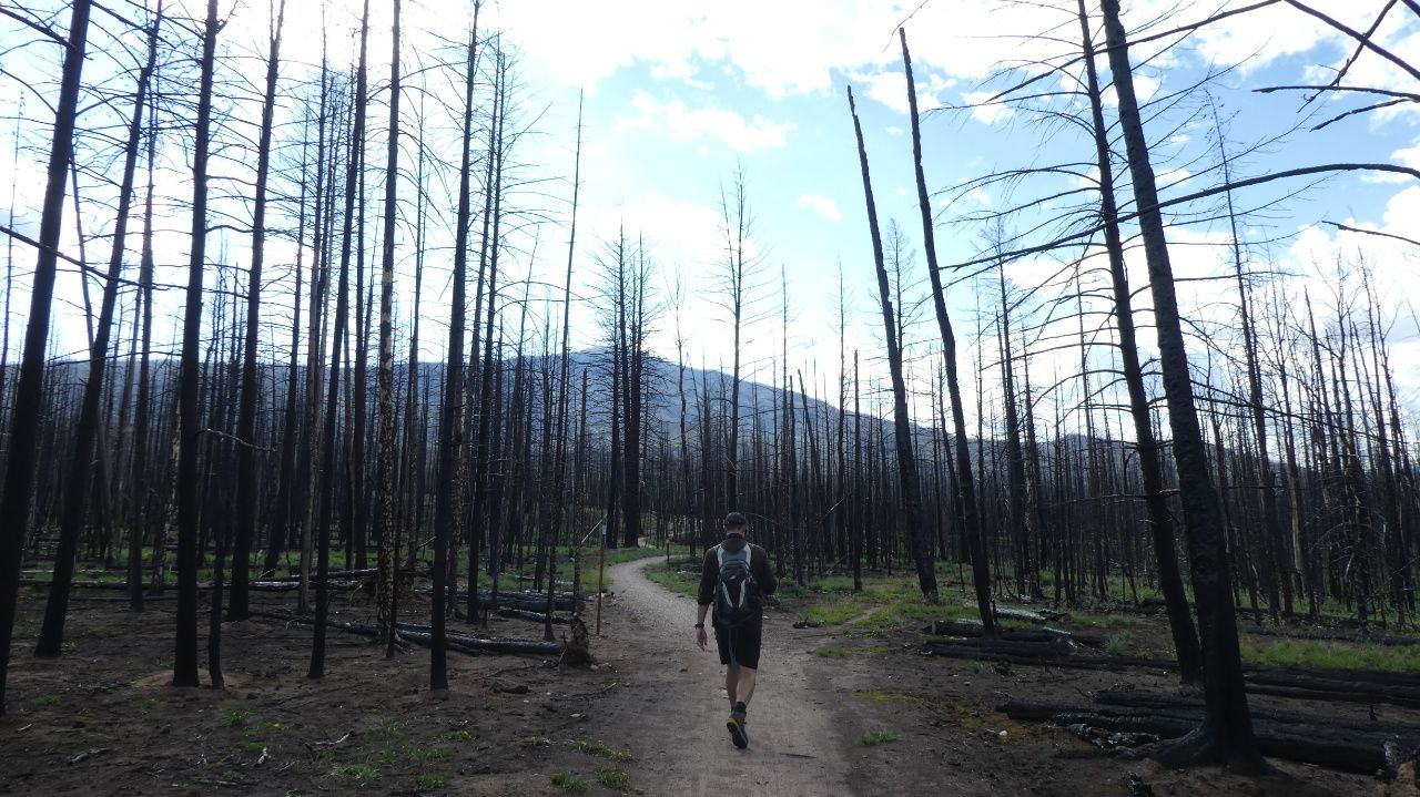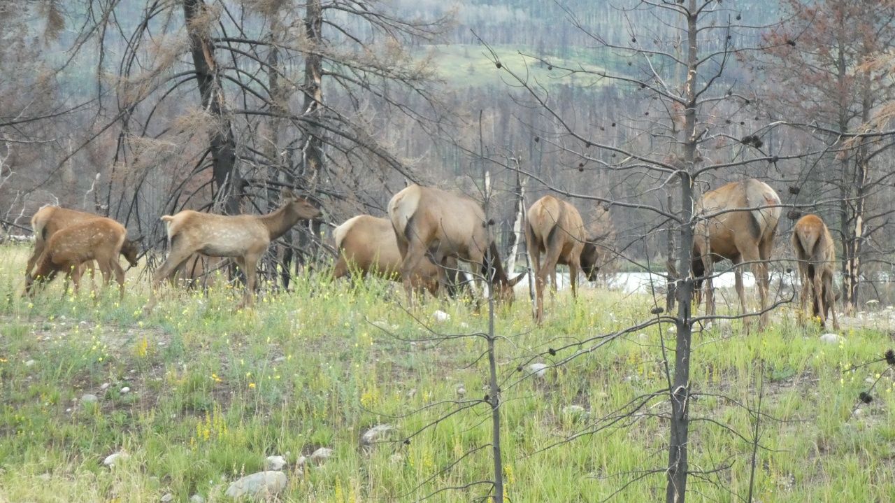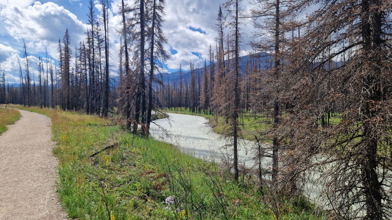 Letztes Jahr im Sommer gab es in Jasper ein sehr großes Feuer, wodurch die komplette Umgebung schwer beschädigt wurde. Rund 36000 Hektar Fläche des Nationalparks wurden verwüstet und 358 von 1113 Häusern in Jasper wurden zerstört. Dementsprechend furchtbar karg schaut es hier aus. Die ganzen Parks in dieser Region sind aufgrund dessen kostenlos und auf Campingplätze gibt es 15% Rabatt, um den Tourismus wieder anzukurbeln.