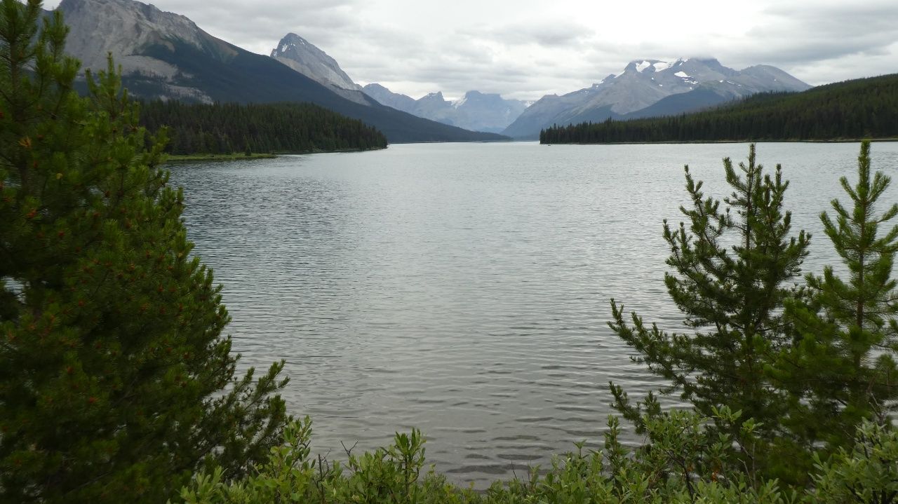 An unserem zweiten Tag in Jasper haben wir sehr viel vor. Zuerst fahren wir früh um 7Uhr los, um zum 50km entfernten „Maligne Lake“ zu fahren und dort eine kleine Wanderung zu machen. Hier gibt es nur einen kleinen Parkplatz, daher müssen wir früh hin, um uns mit unserem großen Wohnmobil noch einen Platz zu ergattern.