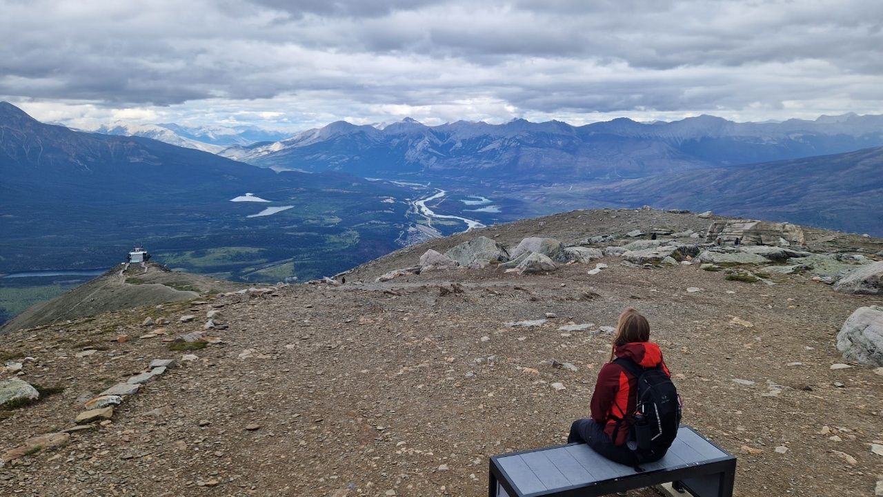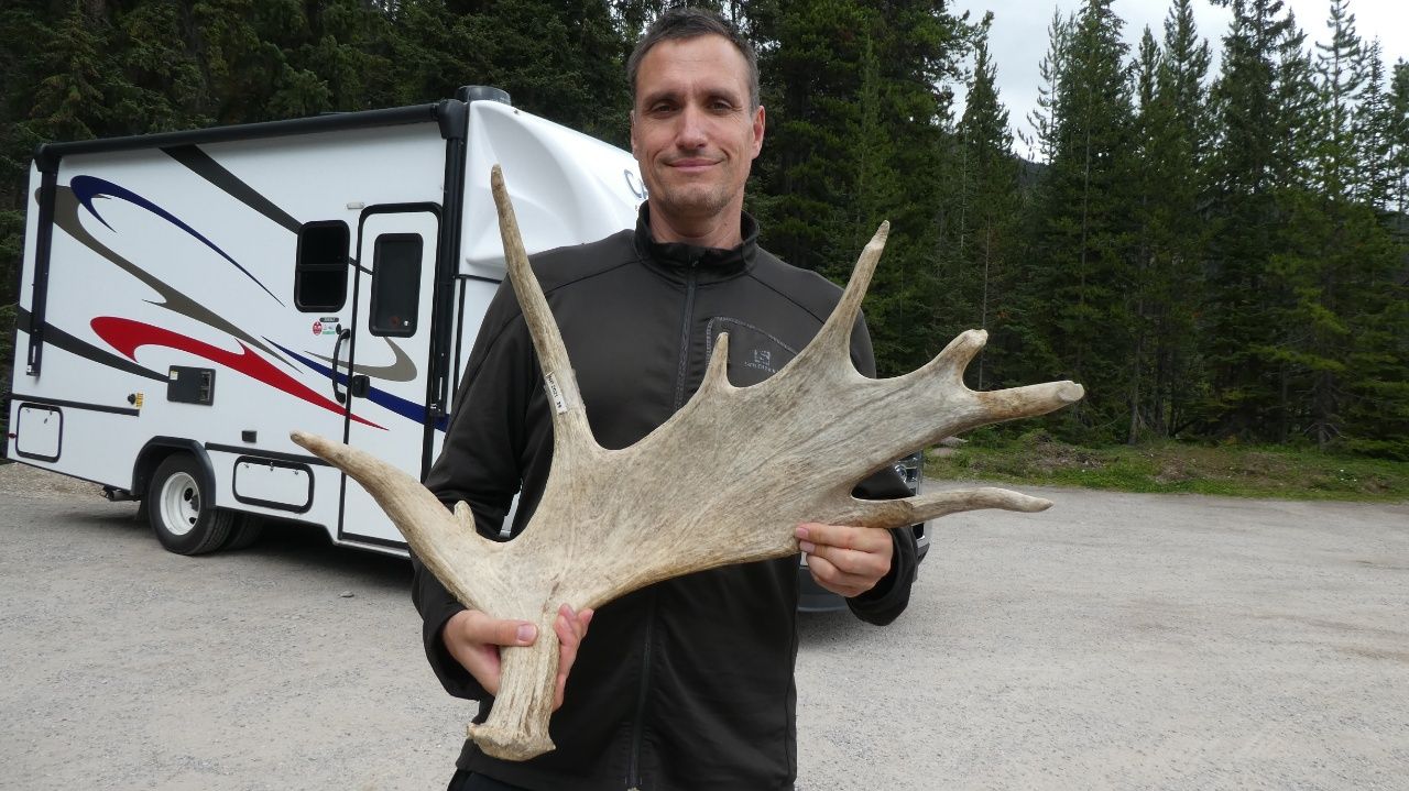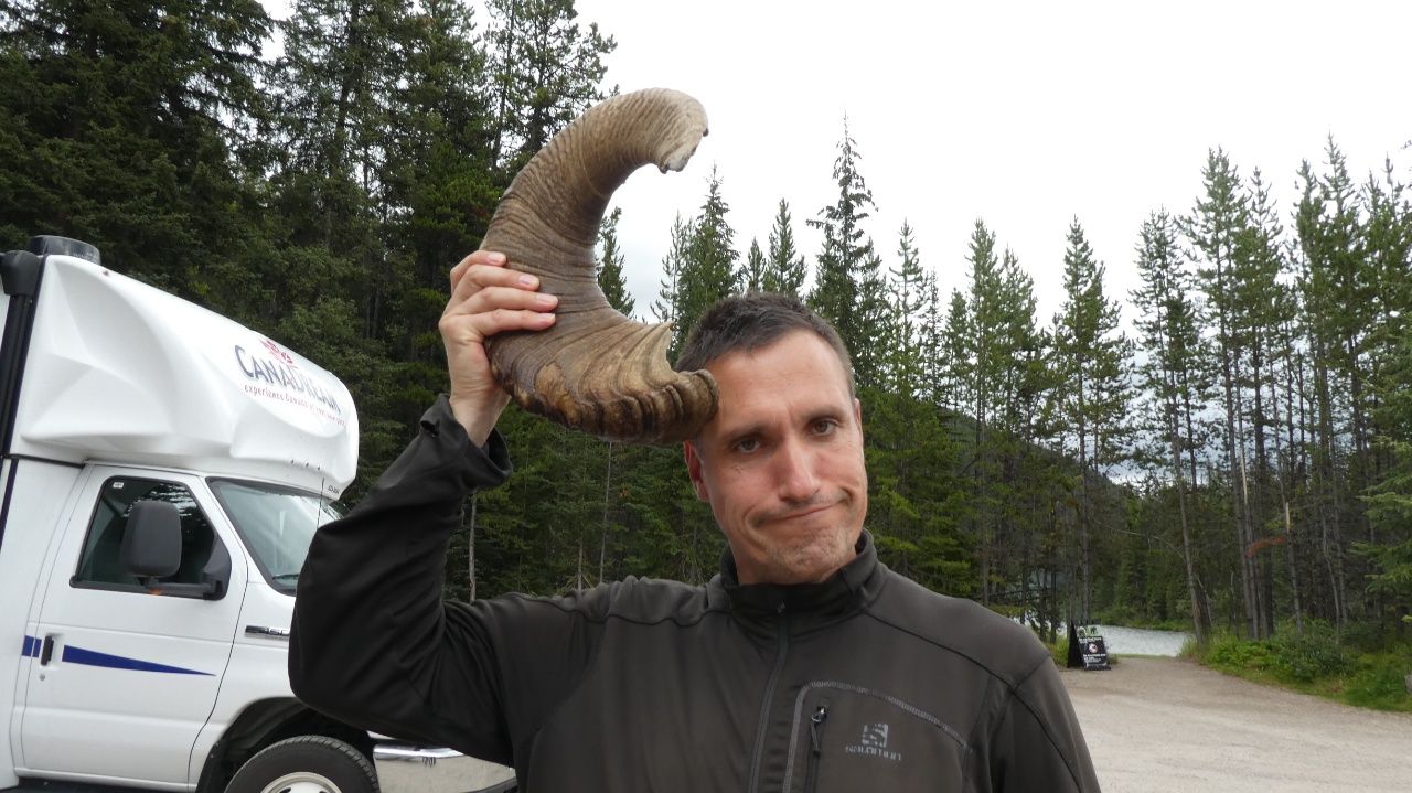Auf dem Weg zum „Maligne Lake“ sehen wir zum ersten Mal wilde Tiere, hier ein paar Wapitis (Rothirsche).„Maligne Lake“Am „Maligne Lake“ sehen wir zum ersten Mal einen „Moose“ also einen großen Elch. Man soll bei Wildtieren nicht nahe heran gehen und nicht füttern. Leider halten sich viele Touristen in der heutigen Instagram-Welt nicht daran!Wir machen eine ca. 4,5km Wanderung und kommen am „Moose Lake“ vorbei.Auf der Rückfahrt fahren wir am „Medicine Lake“ vorbei.Mit der „Jasper Skytram“ geht es auf 2263 HöhenmeterOben angekommen wandern wir ein paar Höhenmeter weiter, genau da wo Marco hinzeigt.Für uns Zugspitz-Wanderer ist die 1,5 Stunden Wanderung auf den „Whistlers Gipfel“ ein Klacks 😉Man hat hier oben einen 360° Anblick auf die Rocky MountainsJuchu, oben angekommen! Blick in den Süden……und hier Blick in den Norden. Im Hintergrund die Stadt Jasper, der Athabasca Fluß und die Rocky MountainsNachmittags sehen wir mit der „Wildlife Search Tour“ viele Tiere. Hier eine Herde Wapitis.Ein Murmeltier – Übrigens heißt der Whistler Mountain wegen dem Murmeltier so.Ganz versteckt im Wald erblicken wir einen Hirsch.Ein scheues RehEin großer Elch Wir treffen am Waldesrand auf eine Grizzly-Bärenfamilie. Eine Mama mit ihren zwei Kindern.Links die Mama, rechts das Junge.Hier Rechts die Mama links das Junge.Hier das zweite Junge. Übrigens muss man sich zu der Situation vorstellen, dass auf der Straße ein richtiger Autostau entstanden ist (der Guide nennt das „Bearjam“, haha), bei dem alle die Nase platt an die Fensterscheibe drücken und wie verrückt Fotos schießen 😉Bei unserer 3 Stunden Busfahrt mit dem Guide machen wir eine kurze Pause an einem Parkplatz. Hier zeigt der Guide ein Elchgeweih……und ein Geweih eines Dickhornschafes. Der Guide erzählt uns: Jedes Jahr fällt das Geweih der Tiere ab und wächst neu! Und je älter das Tier, desto größer das Geweih.