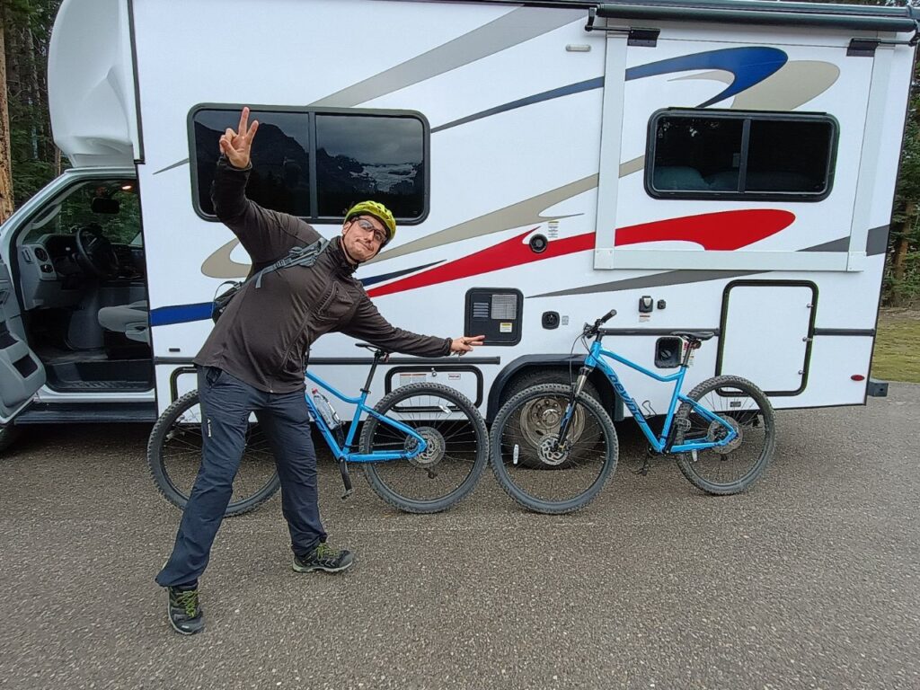 Heute haben wir eine abenteuerliche 30km Mountainbike-Tour zum „Lake Moraine“ und zum „Lake Louise“ vor. Warum wir uns für eine Fahrradtour entschieden haben liegt daran, dass es verboten ist, mit dem eigenen Auto oder mit dem Wohnmobil zu diesen beiden Seen zu fahren. Es gibt also nur Busse, die dort hin dürfen. Diese Busfahrten sind seit Wochen schon ausgebucht! Wir haben also den Tipp „mit dem Fahrrad zu den zwei Seen zu fahren“ von deutschen Reisenden bekommen, die das gleiche Problem hatten wie wir. Das Einzige was wir nicht bedacht hatten, ist dass wir ja in den Rocky Mountains sind, dass heißt es ging mit den Fahrrädern schön steil bergauf!!! 🙂