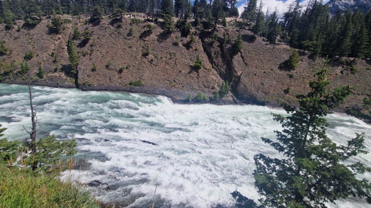 Wir laufen weiter aus der Innenstadt heraus auf dem „Bow Falls Trail“ entlang und sehen hier…