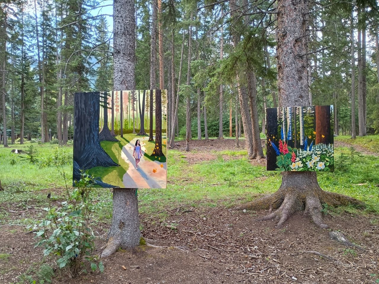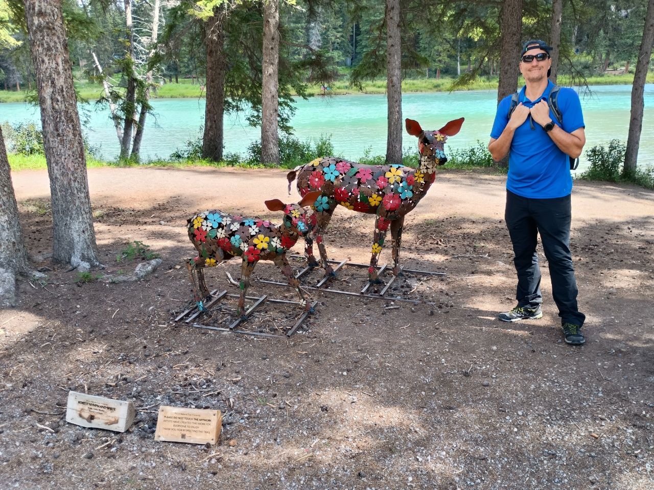Wir laufen den „Art in Nature Trail“ bis zum „Bow Falls Trail“. Hier gibt es unzählige schöne Kunstwerke, die in der Natur ausgestellt sind.