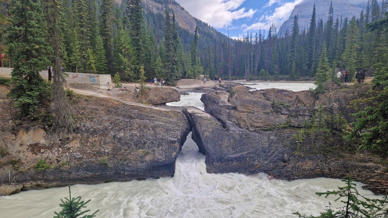 Ungefähr 293km in ca. 3,5 Stunden fahren wir nun nach Revelstoke und übernachten auf dem „Lamplighter Campground“. Auf dem Weg dorthin machen wir einen kurzen Stopp im „Yoho National Park“, um die „Natural Bridge“ anzuschauen. Zu dem See „Emerald Lake“, der auch in dem Park liegt, können wir leider nicht fahren, da es für unser dickes Wohnmobil wegen Überfüllung keinen Parkplatz gibt.
