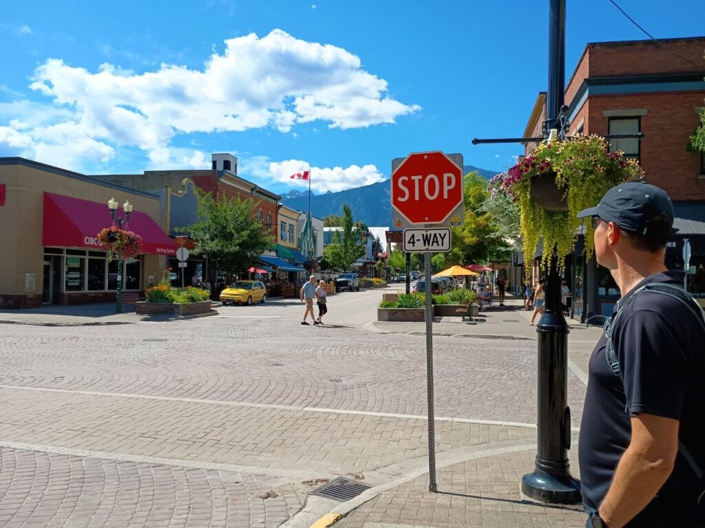 Wir schlendern durch die zentrale Einkaufsstraße  „MacKenzie Avenue“ in Revelstoke, ein kleines Eisenbahnstädtchen.