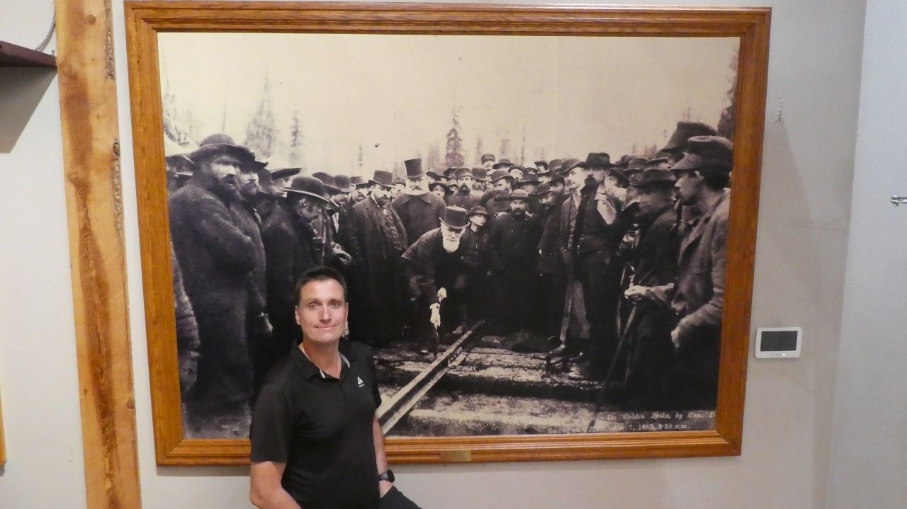 Dies ist eines der berühmtesten Bilder der Zeit. Am 7.11.1885 wurde der letzte Schienennagel eingeschlagen und repräsentiert die Fertigstellung der Eisenbahn und die Vereinigung der Nation.