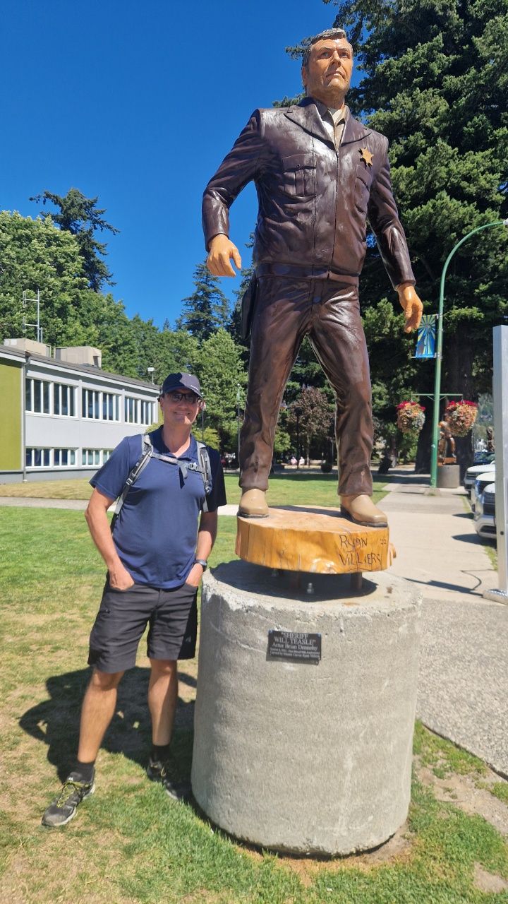 Marco steht neben der Statue vom Sheriff Will Teasle gespielt von Brian Dennehy