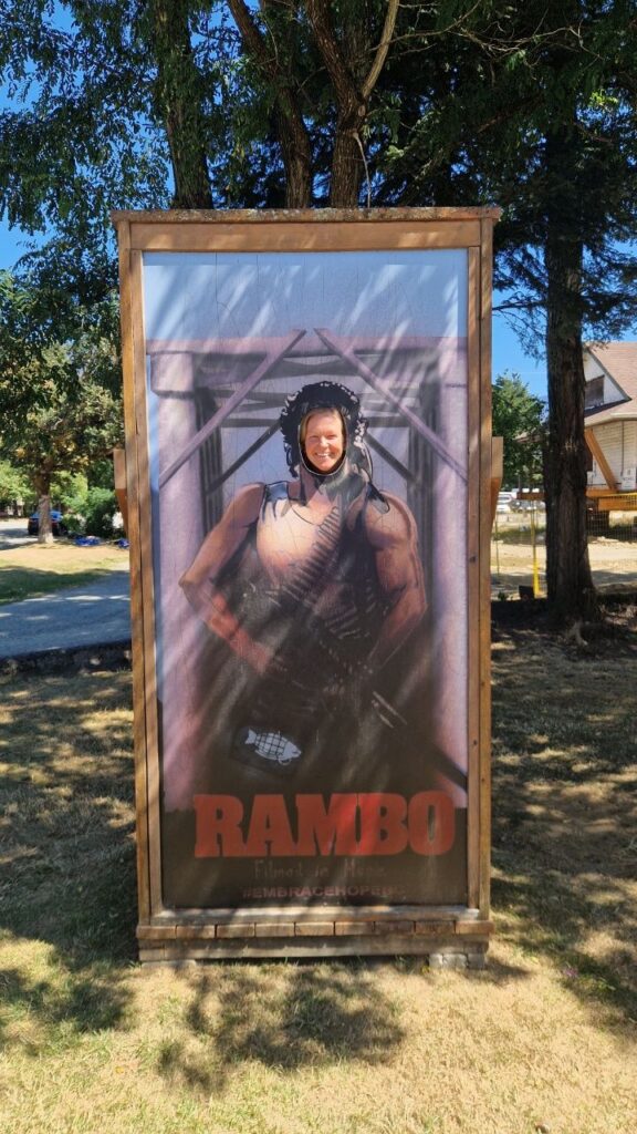 An unserem letzten Übernachtungstag mit unserem Wohnmobil sind wir in „Harrison Hot Springs“. Wir fahren ca. 290km dorthin und machen vorher einen Halt in Hope. Marco ist großer Fan von dem Film „Rambo“, daher ist dieser kurze Zwischenstopp ein Muss 🙂