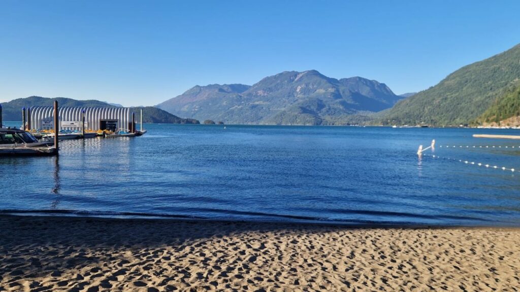 Die Stadt „Harrison Hot Springs“ liegt direkt am See „Harrison Lake“, wo es einen großen Wasserpark, einen Hafen und einen Strand zum Baden gibt. Wir verbringen den sonnigen Tag zuerst am Pool im Campingplatz und laufen spät Abends zum 20min entfernten See, um dort in einen der vielen Restaurants zu essen.
