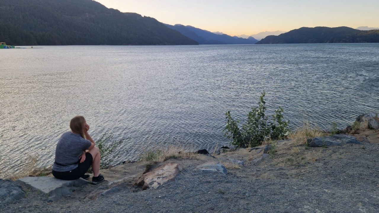 Wir genießen den Sonnenuntergang am Harrison Lake