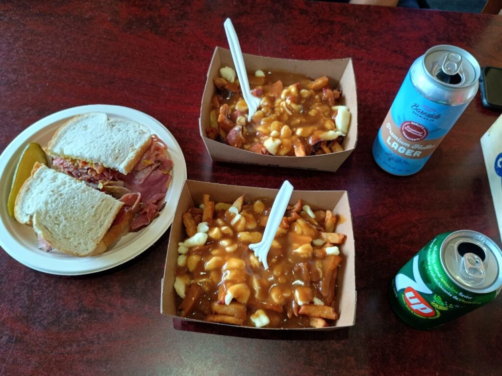 Im „La Belle Patate“ essen wir „Montreal Smoked Meat“ (links) und das Nationalgericht „Poutine“ (rechts)