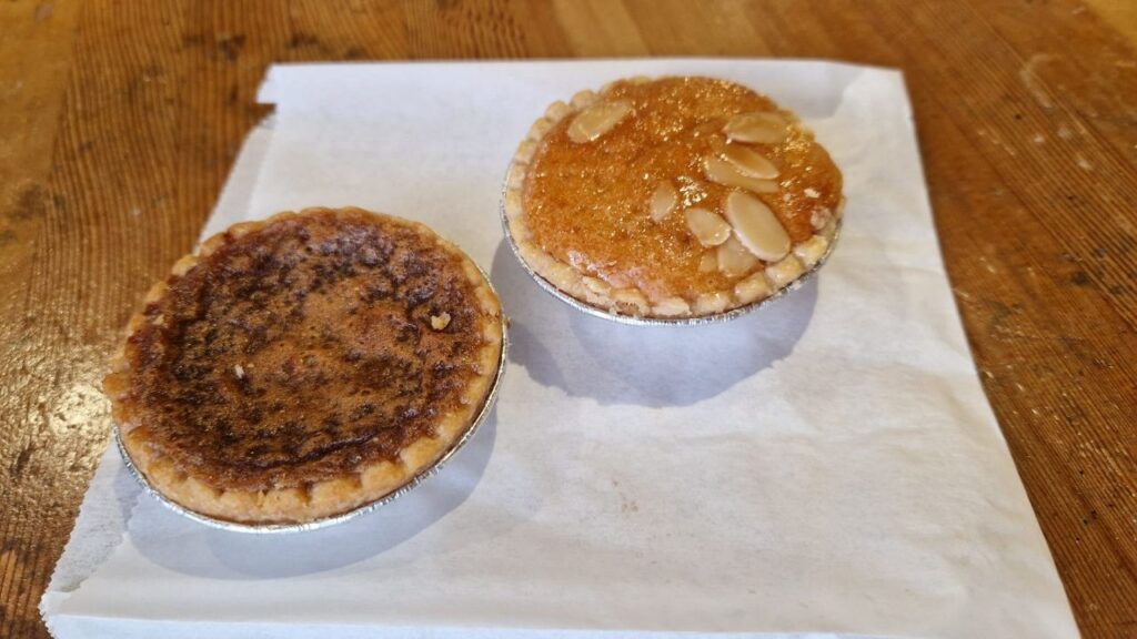 …und zum Nachtisch eine „Tart“ (rechts „Almond Tart“, links „Butter Tart“).