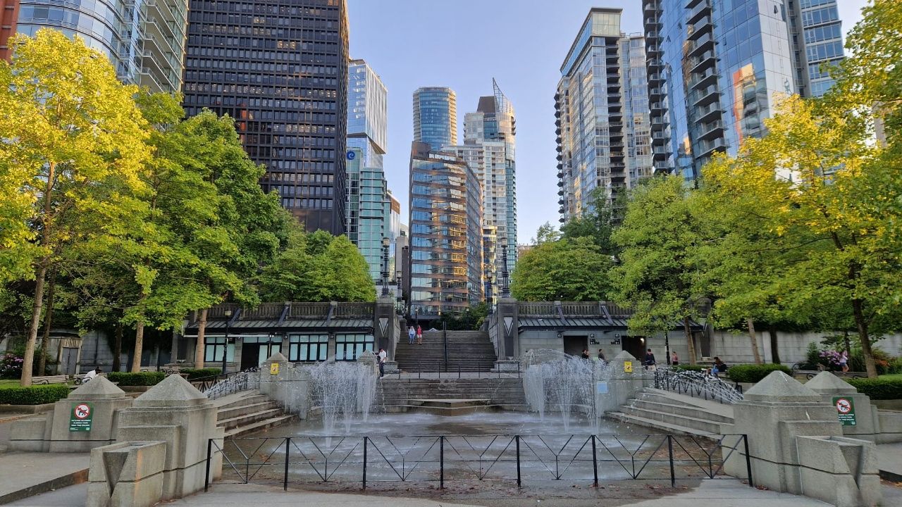 Vormittags um 11 Uhr landen wir in Vancouver, die Hafenstadt an der Westküste von British Columbia und die drittgrößte Stadt von Kanada. Wir haben am ersten Tag einen ordentlichen Jetlag, da wir auch Vormittags in Deutschland ins Flugzeug gestiegen sind und nun 10 Stunden Zeitunterschied haben. Wir sind also froh, dass das Blue Horizon Hotel uns schon um 13 Uhr einchecken lässt und schlafen erst einmal zwei Stunden.