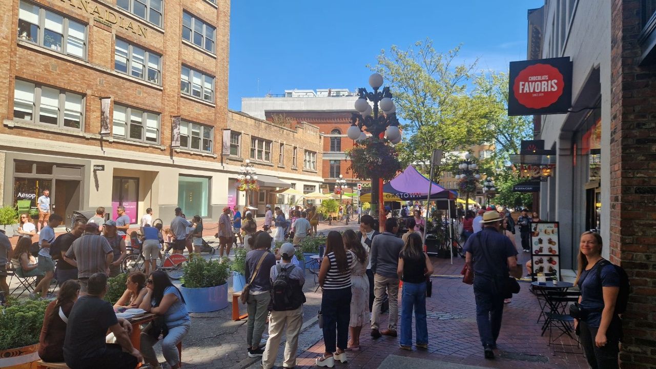 Am nächsten Tag laufen wir von unserem Hotel durch Dowtown zur Granville Island.