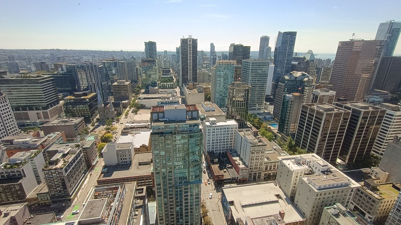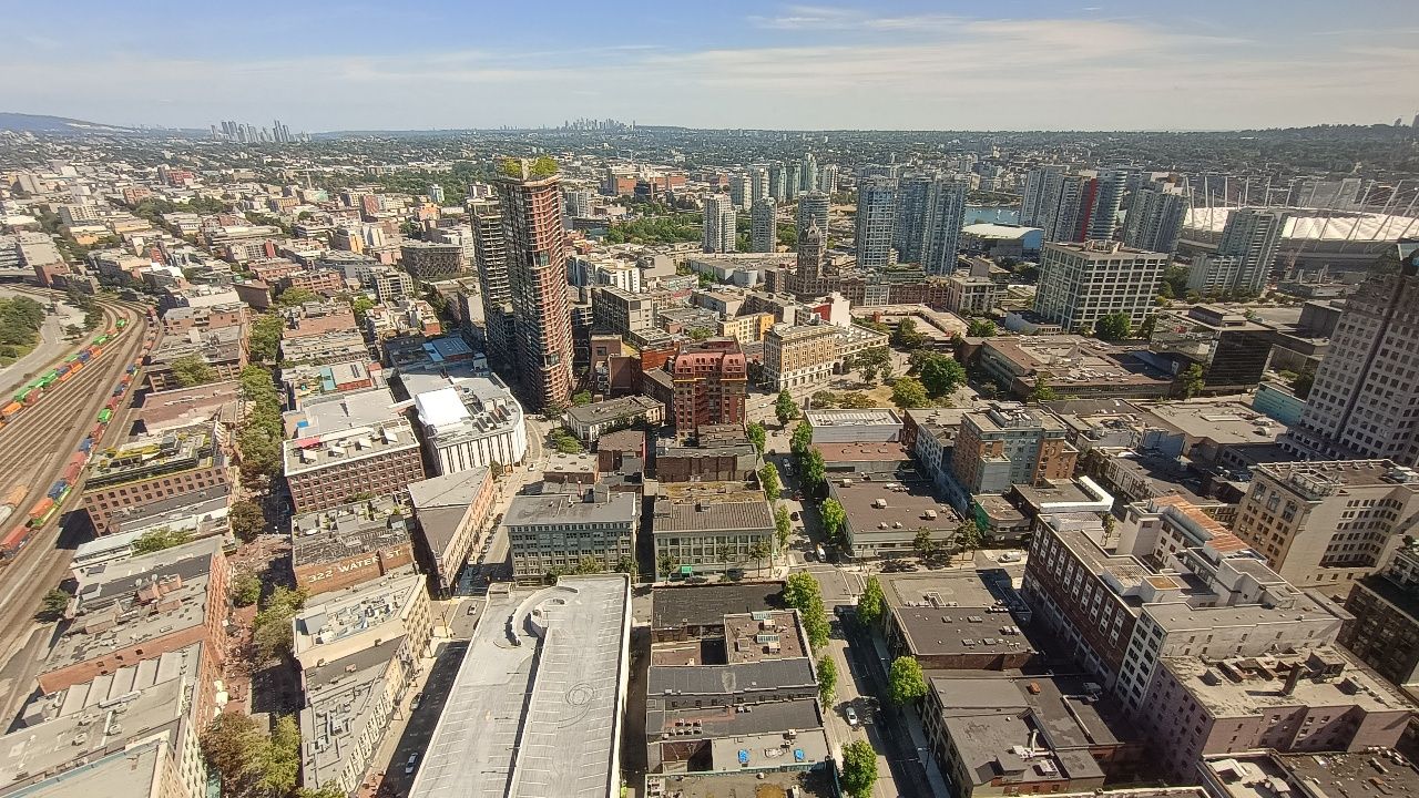 In Gastown fahren wir auf den Vancouver Aussichtsturm mit dem Aufzug hoch, um eine Aussicht über die Stadt in alle Richtungen zu genießen.